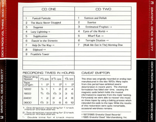 USED 2CD - Grateful Dead – Dick's Picks Volume Three: Pembroke Pines, Florida 5/22/77